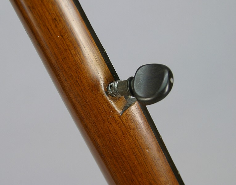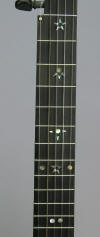 with a thick ebony fingerboard and very thin ebony peghead overlay.