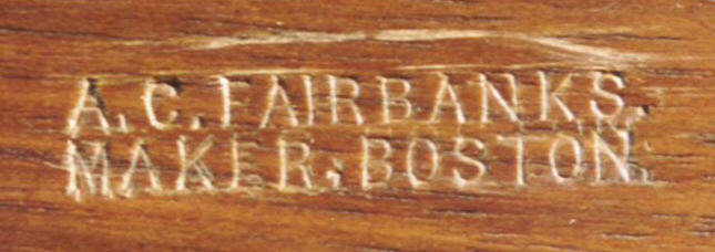 Fairbanks, Maker. Boston” in 2 rows of small block letters on the dowel stick.