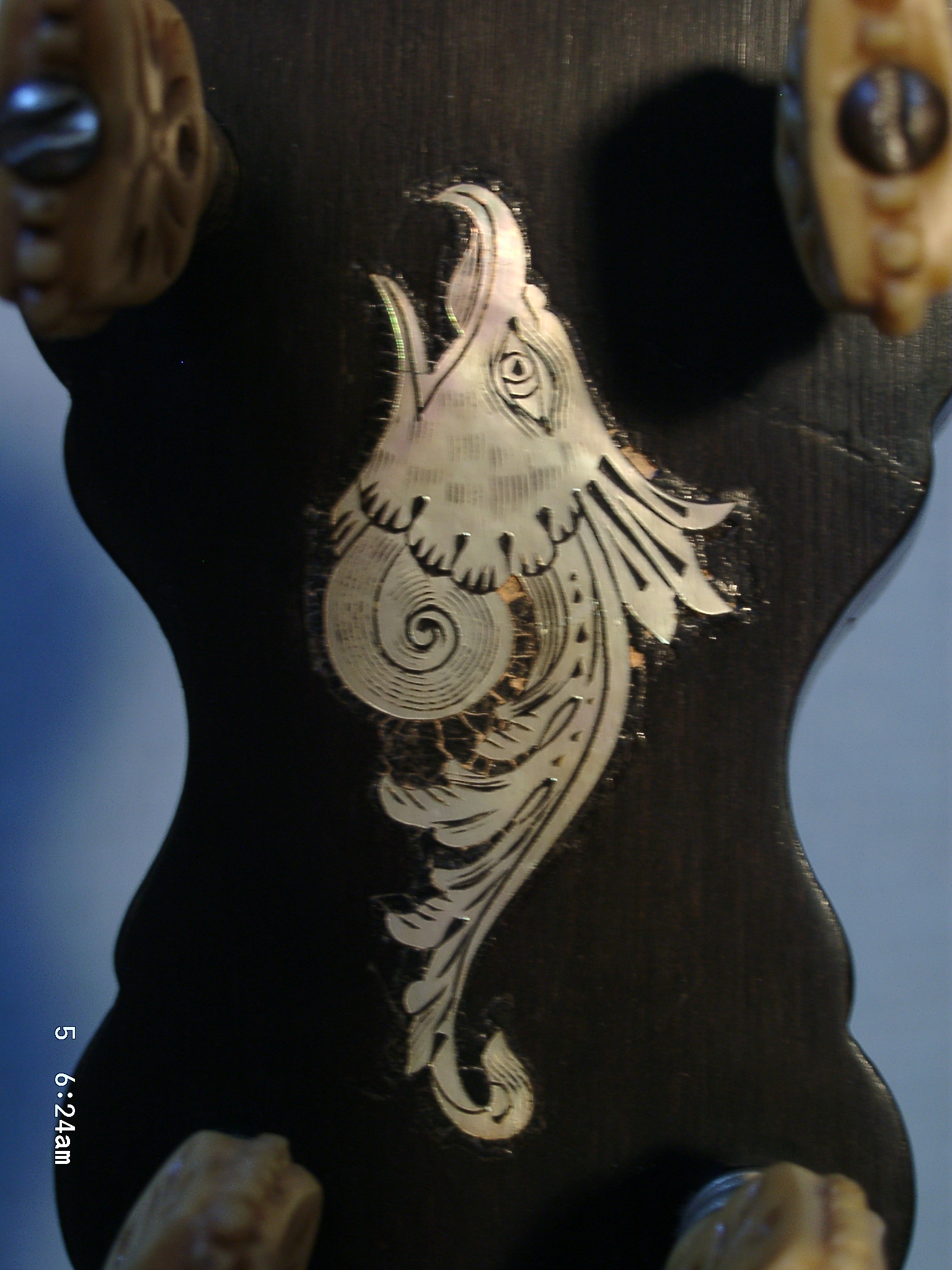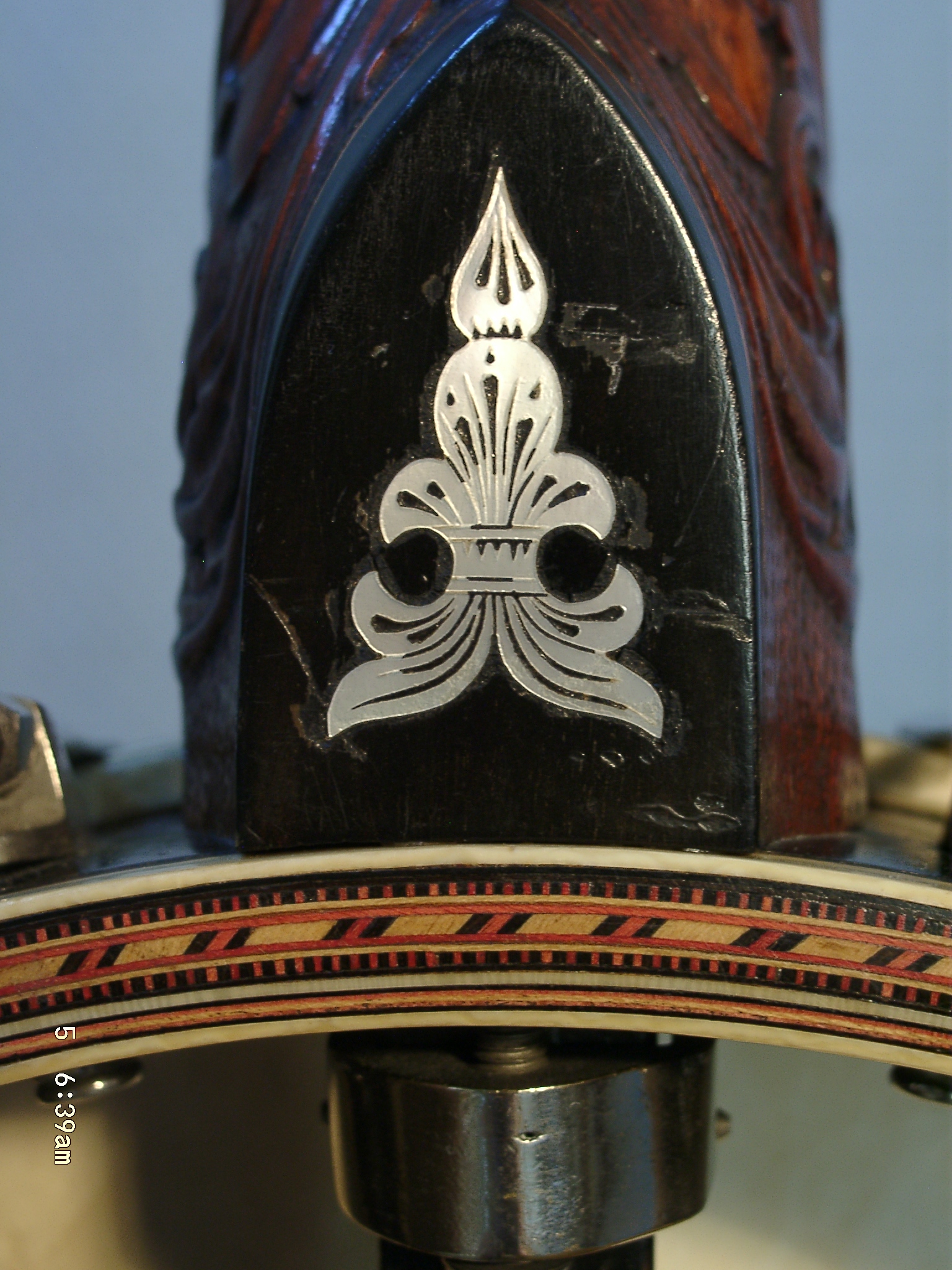 the peghead has far more detailed engraving than a typical No. 6. ( Viewers may