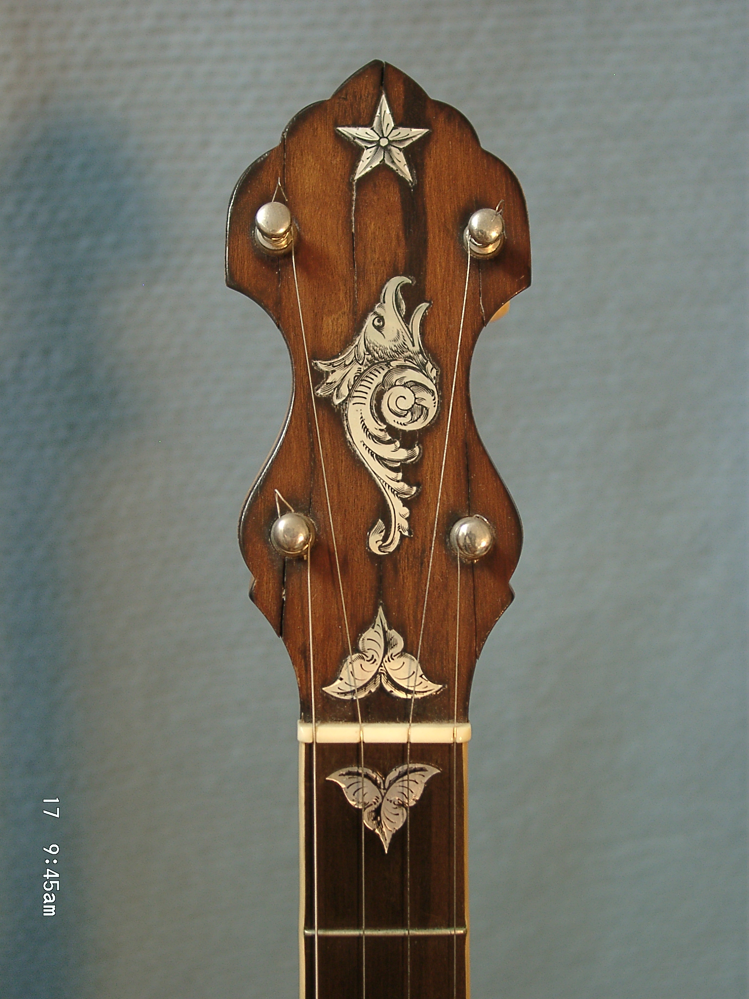 fingerboard was of ebony with a prominent engraved star in fret 5. Numerous other, smaller