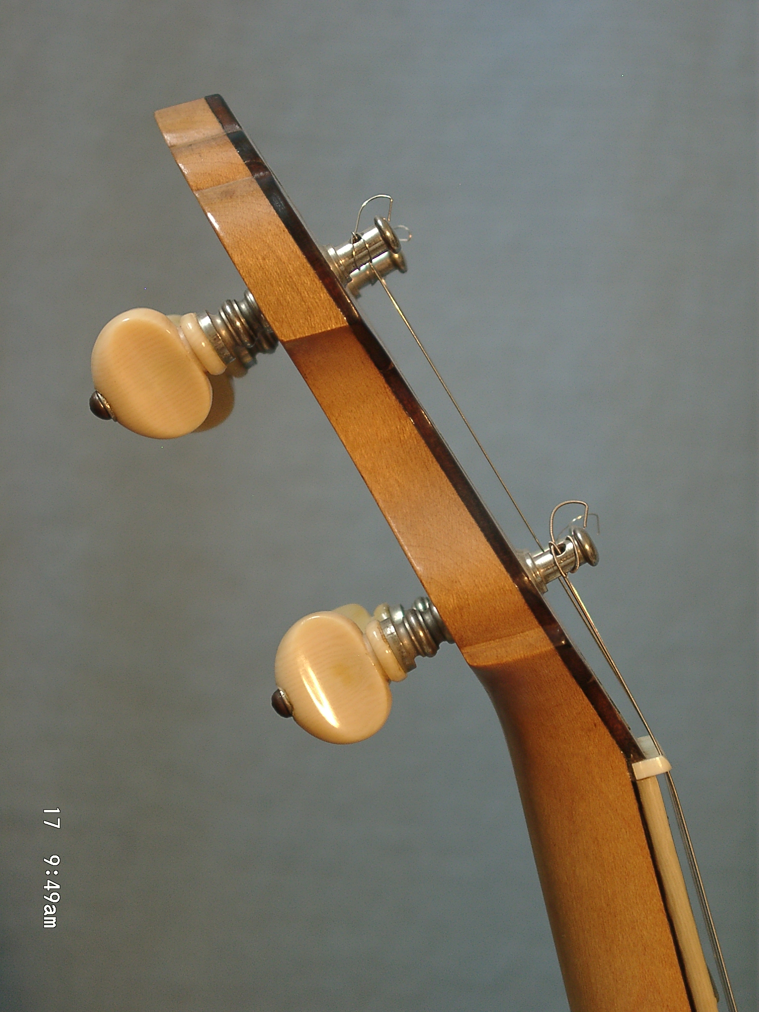 and bold engraving. Tuners were patents with ivoroid knobs. Dowel sticks