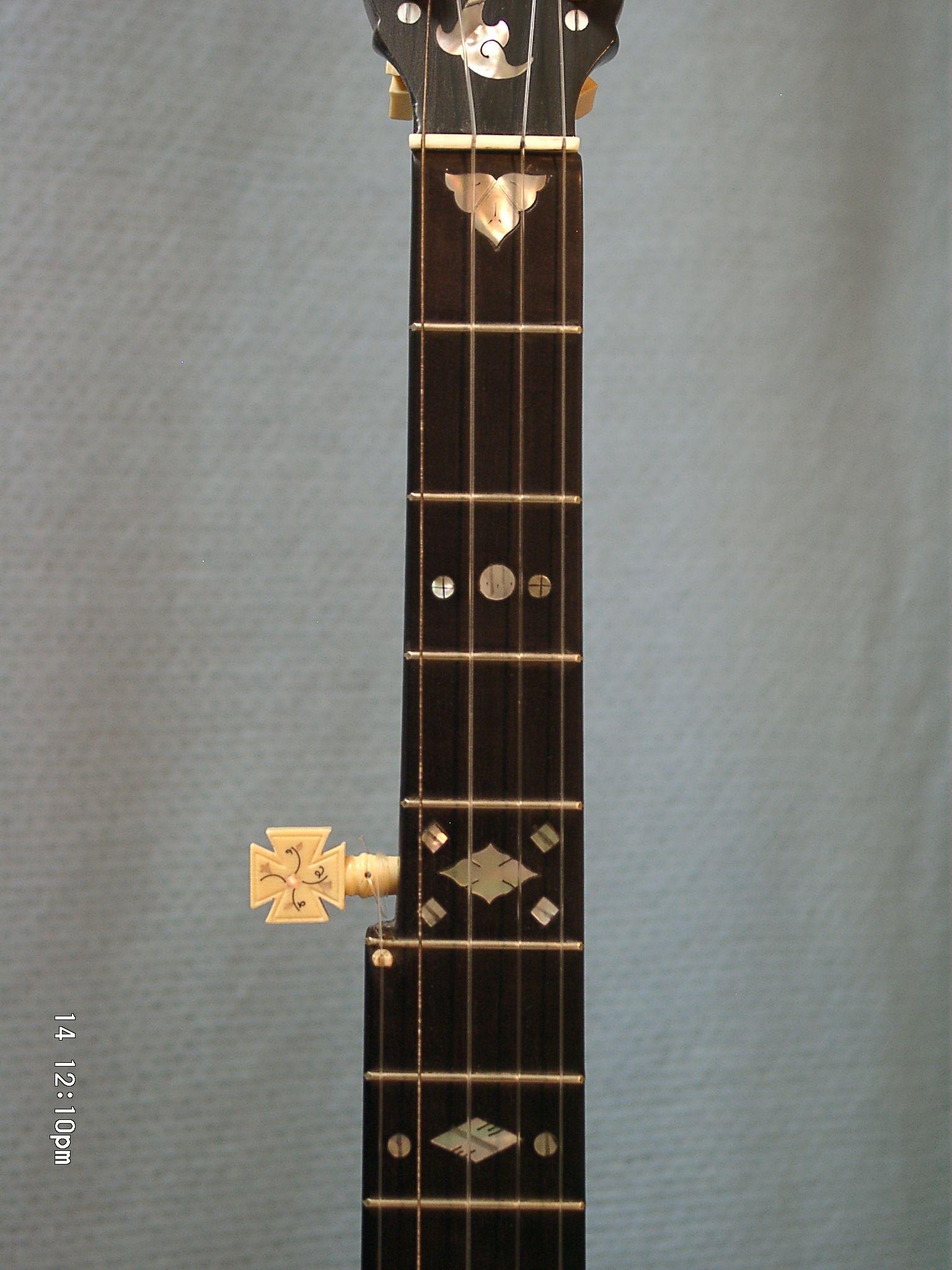 5) Inlaid Maltese Cross celluloid tuners.